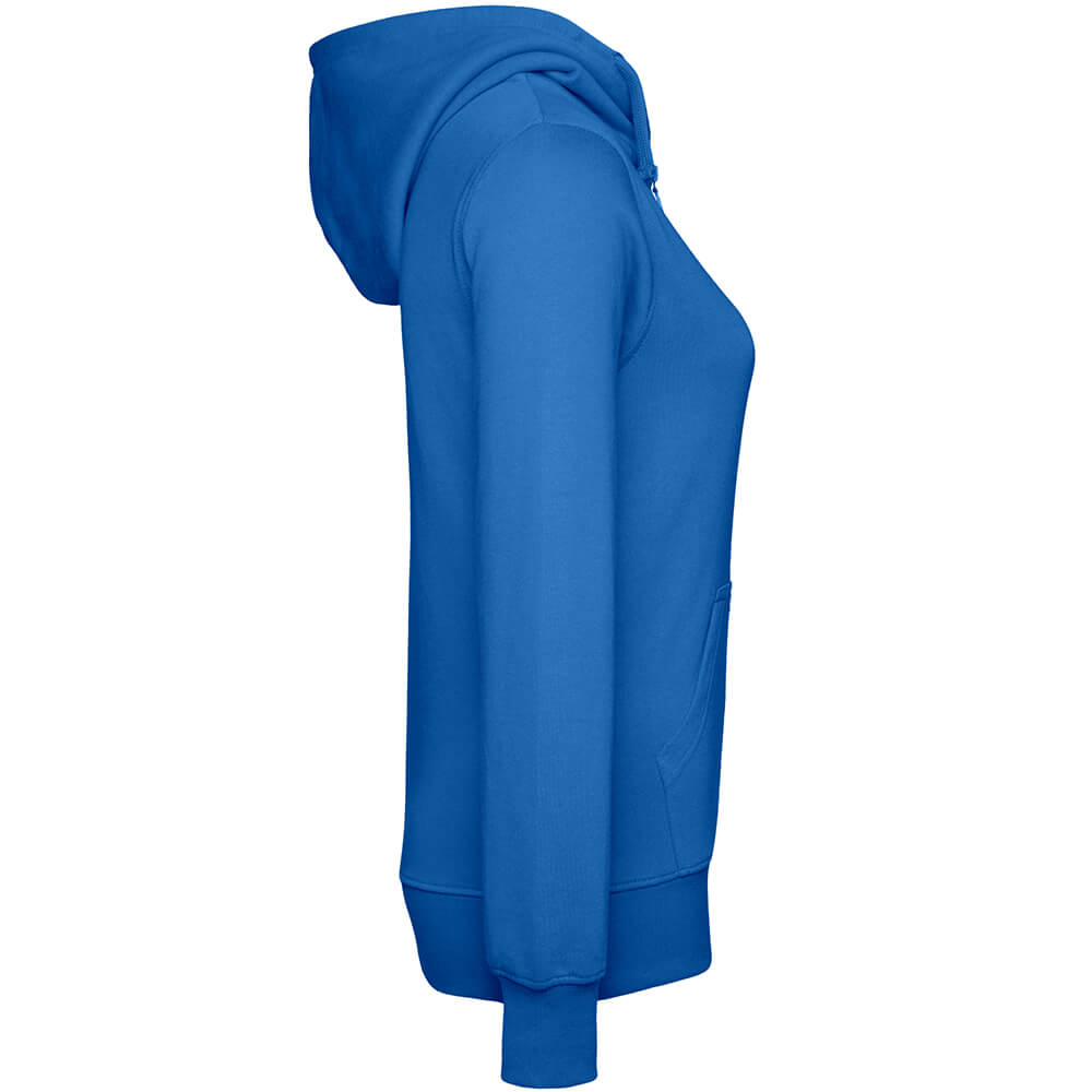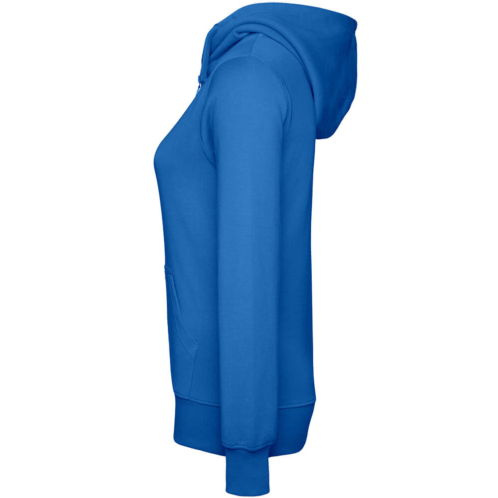 An den Ärmeln und dem Hüftabschluss kommen Rippbündchen zum Einsatz, wodurch die Bio-Kapuzenjacke einen perfekten Sitz erhält. Zudem ist die Frauen Kapuzenjacke innen angeraut und der Halt wurde dadurch weiter verbessert. Der zertifizierte Artikel wurde aus 100% gekämmter Fairtrade Bio-Baumwolle mit einer Stoffdichte von 300 g/m² gefertigt. Auch bei der Produktion steht das Thema Nachhaltigkeit an oberster Stelle. Der Herstellungsbetrieb setzt auf Windenergie. Er produziert davon sechsmal so viel, wie tatsächlich für die Fertigung benötigt wird.