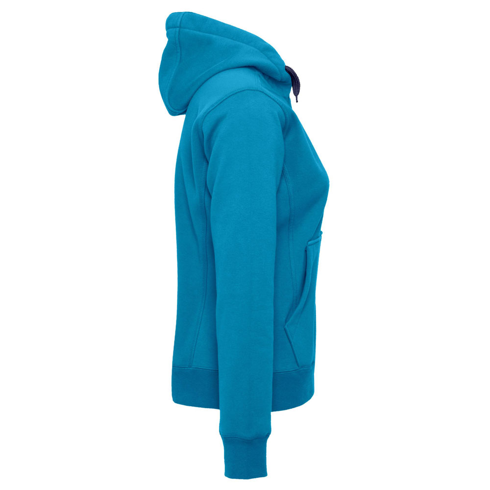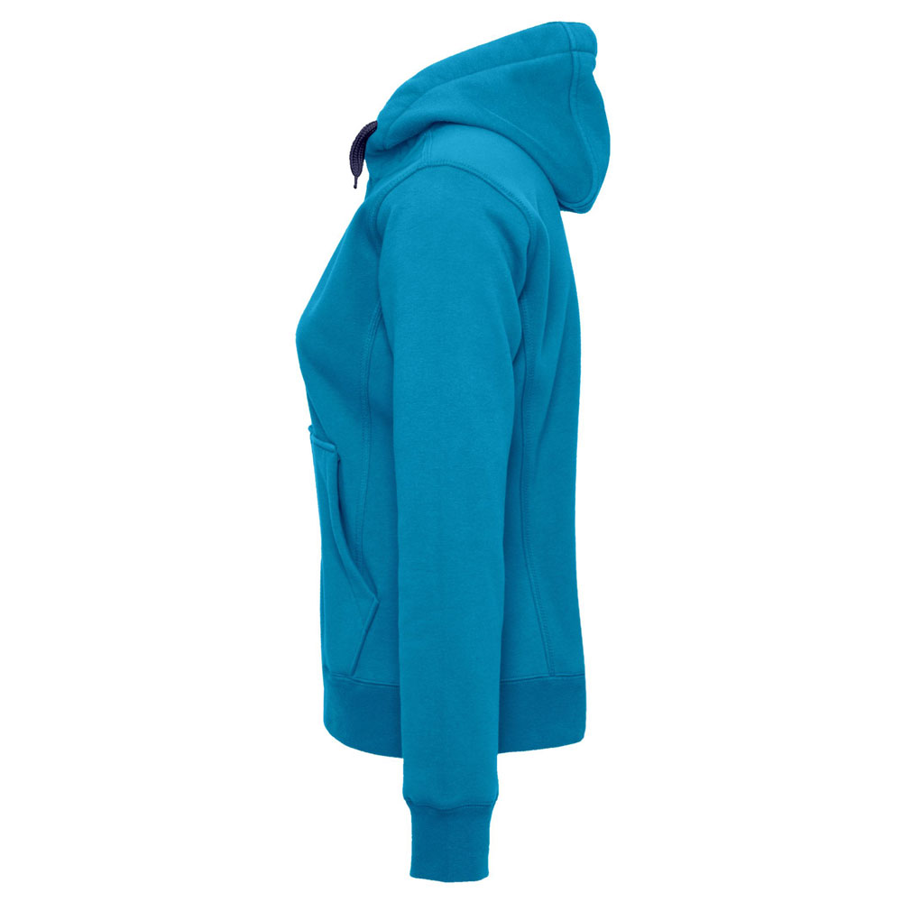 Kapuzenjacken sind unglaublich praktisch und sehen super aus. Sie schützen bei Kälte und lassen bei sportlicher Betätigung die nötige Bewegungsfreiheit. Die Doubleface Kapuzenjacke von James & Nicholson wird Frauen begeistern. Außen besteht sie zu 55% aus Polyester und zu 45% aus Baumwolle mit einer Stoffdichte von 380 g/m². Bei der angerauten Innenseite kommt Microfleece zum Einsatz. Die Sportive Bonding-Sweatjacke mit Kapuze ist tailliert geschnitten und die Kapuze wurde mit einem Kinnschutz ausgestattet.