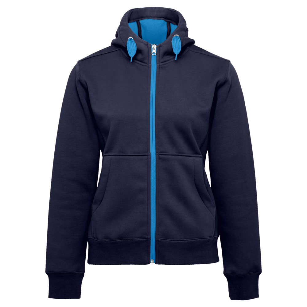 Kapuzenjacken sind unglaublich praktisch und sehen super aus. Sie schützen bei Kälte und lassen bei sportlicher Betätigung die nötige Bewegungsfreiheit. Die Doubleface Kapuzenjacke von James & Nicholson wird Frauen begeistern. Außen besteht sie zu 55% aus Polyester und zu 45% aus Baumwolle mit einer Stoffdichte von 380 g/m². Bei der angerauten Innenseite kommt Microfleece zum Einsatz. Die Sportive Bonding-Sweatjacke mit Kapuze ist tailliert geschnitten und die Kapuze wurde mit einem Kinnschutz ausgestattet.