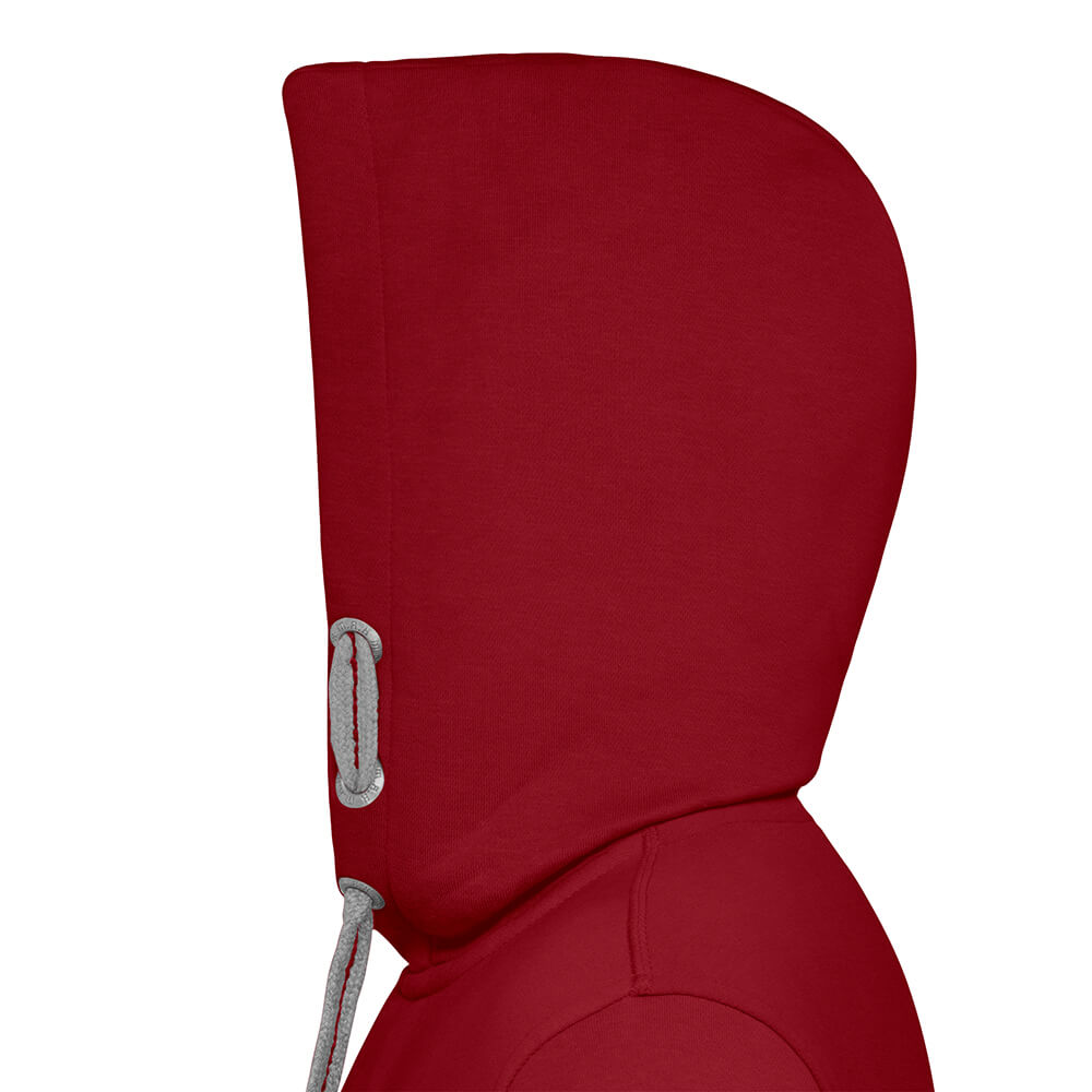Die Kapuze mit Kontrast-Innenfutter und mittig bestickter, flacher Kontrast-Kordel schützt vor Kälte und das farblich passende, verstärkte Nackenband sorgt für einen perfekten Sitz der Sweatjacke. Auf beiden Seiten sind je drei HRM-Metall-Ösen zu finden und der HRM-Metall-Schieber steht für eine reibungslose Funktion des hochwertigen Reißverschlusses. In der linken Seitennaht der Kapuzen-Sweatjacke ist das gewebte Fair4All Flaglabel zu finden. Abgerundet werden die Vorzüge durch die Verarbeitung von Saum und Abschluss von Taschen und Ärmeln aus elastischen 2x2 Ripp-Strick-Bündchen.
