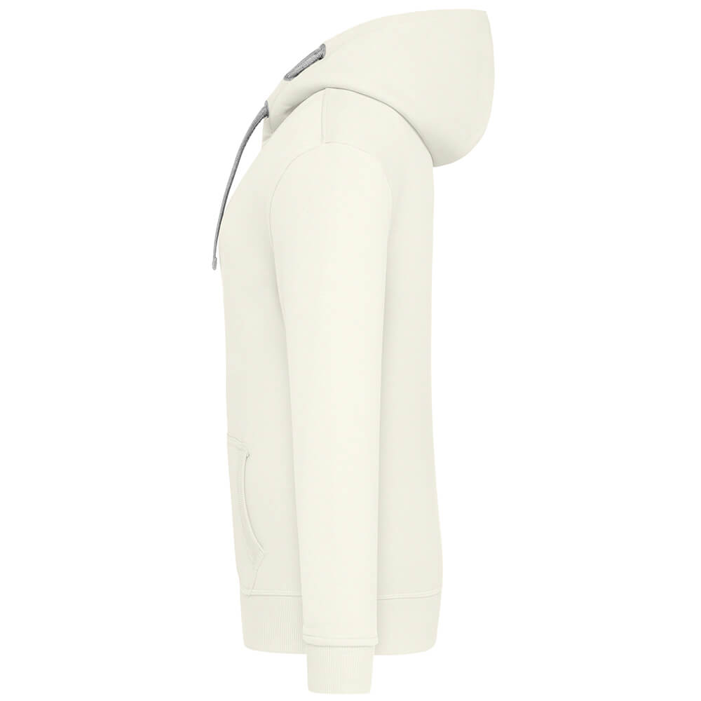 Wenn sich weiches Mischgewebe an den Körper schmiegt und die Kombination aus 80% Baumwolle und 20% Polyester mit einer Stoffdichte von 320 g/m² einen hochwertige Eindruck hinterlässt, dann ist die Kontrast Kapuzenjacke für Frauen nicht weit. Die Kapuzenjacke von HRM ist in den Übergrößen 3XL, 4XL und 5XL erhältlich und weiß mit einem leicht taillierten, modischen Schnitt zu überzeugen. Die Innenseite wurde angeraut, während die Oberflächenstruktur sehr glatt ist. Das verstärkte Nackenband wurde bei der Kontrast Kapuzenjacke aus BSCI-zertifizierter Produktion farblich angepasst.