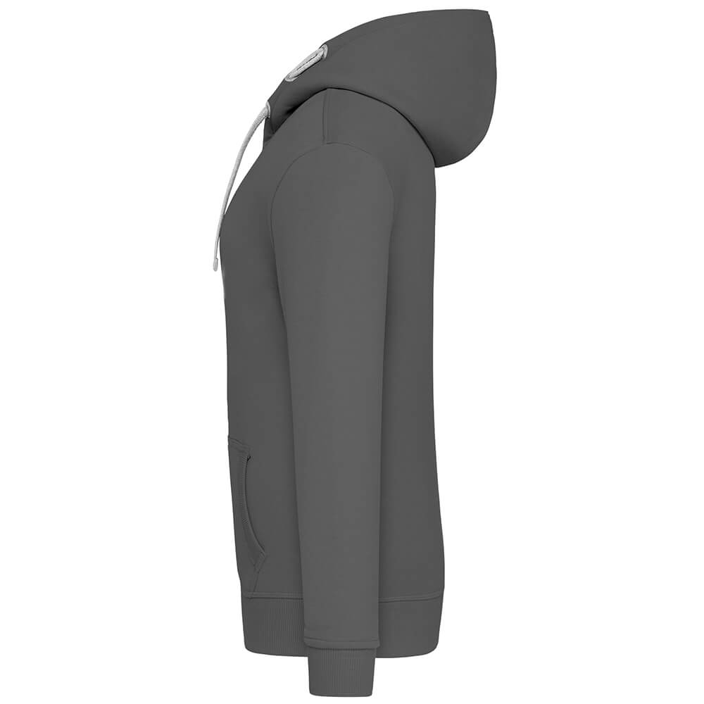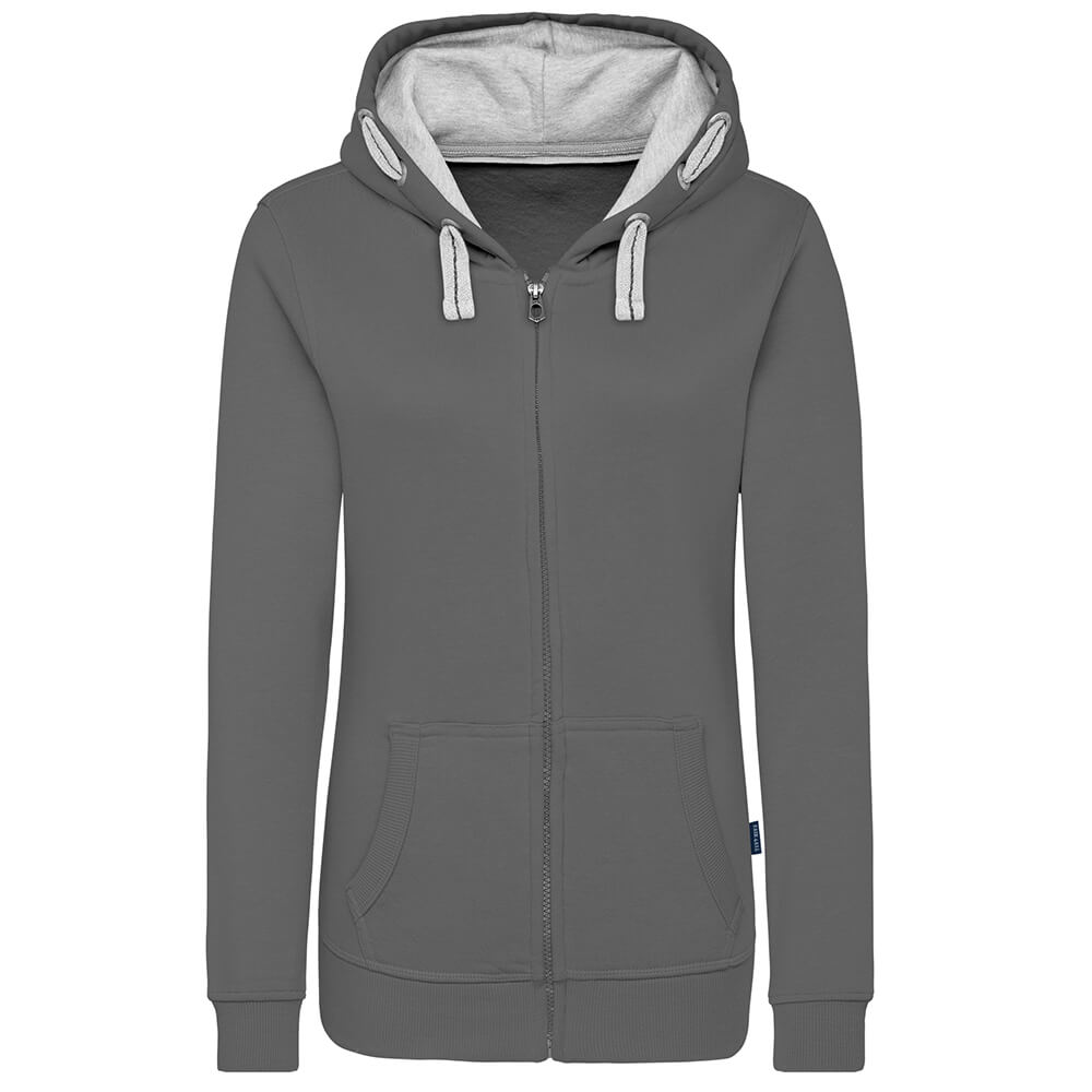 Wenn sich weiches Mischgewebe an den Körper schmiegt und die Kombination aus 80% Baumwolle und 20% Polyester mit einer Stoffdichte von 320 g/m² einen hochwertige Eindruck hinterlässt, dann ist die Kontrast Kapuzenjacke für Frauen nicht weit. Die Kapuzenjacke von HRM ist in den Übergrößen 3XL, 4XL und 5XL erhältlich und weiß mit einem leicht taillierten, modischen Schnitt zu überzeugen. Die Innenseite wurde angeraut, während die Oberflächenstruktur sehr glatt ist. Das verstärkte Nackenband wurde bei der Kontrast Kapuzenjacke aus BSCI-zertifizierter Produktion farblich angepasst.