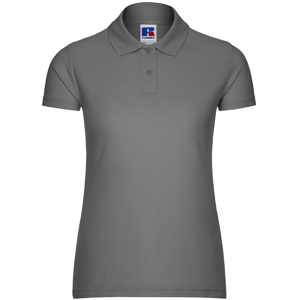 Poloshirts vereinen viele Vorzüge. Einerseits gehören sie inzwischen zum Business-Look, andererseits kommt auch die sportliche Komponente nicht zu kurz. Frauen lieben Poloshirts und das Modell aus Mischgewebe von Russell gehört wirklich zu den absoluten Klassikern. Die Mischung aus 35% ringgesponnener Baumwolle und 65% Polyester mit einer Stoffdichte von 215 g/m² macht das Poloshirt robust, wozu auch die Doppelgarn-Konstruktion ihren Teil beiträgt. Überhaupt liegt der feine Piqué Stoff mit Wabenstruktur wunderbar auf der Haut an. Der feminine, taillierte Schnitt gefällt den Frauen und macht besonders attraktiv.