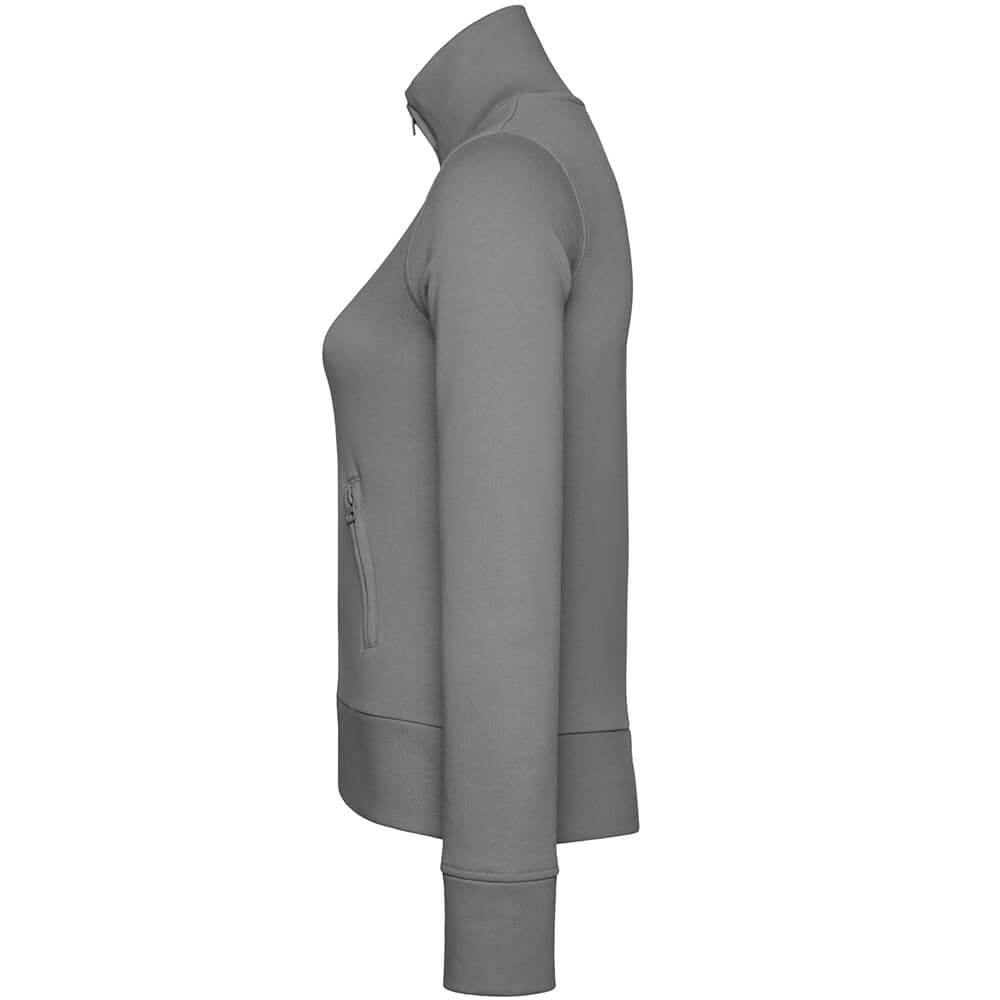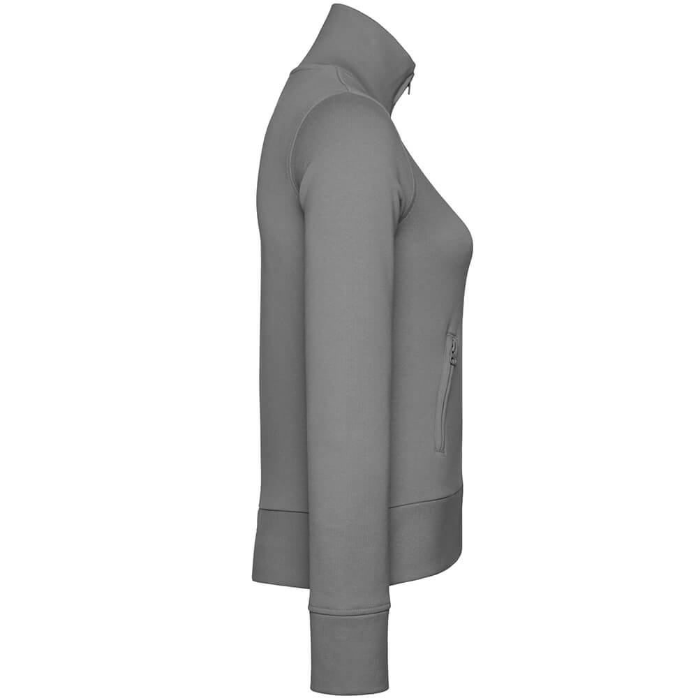 Die Frauen Sweatjacke Stand-Up Collar von Promodoro besticht durch ihre hervorragenden Eigenschaften und der sportliche Look wird hier auf ein neues Level gehoben. Trotz ihrer sehr guten thermophysiologischen Eigenschaften ist sie auch robust, denn aufgrund der Doppelnahtverarbeitung bringt die Sweatjacke so schnell nichts aus der Form. Für einen guten Sitz steht die angeraute Innenseite und die Elasthanbündchen an Arm und Saum sorgen selbst bei sportlichen Aktivitäten für einen optimalen Tragekomfort. Die feine Oberfläche fühlt sich angenehm an und durch den Ton-in-Ton Reißverschluss wirkt die Optik insgesamt sehr stimmig.