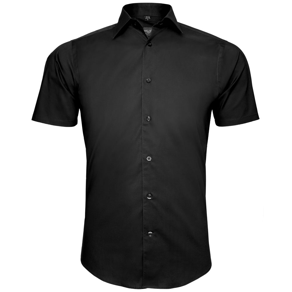 Mit zeitgemäßem Design und einem körperbetonten Schnitt schafft es das Kurzarm-Hemd aus der Russell Collection, alle Männer in seinen Bann zu ziehen. Das glatte Gewebe ist mit leichtem Stretch versehen. Dafür sorgt der 3%-ige Elasthananteil. Ein halb ausgestellter 1-Knopf-Kragen darf ebenfalls nicht fehlen. Dem New-Kent-Kragen wurde durch Stäbchen eine zusätzliche Stabilität verliehen.