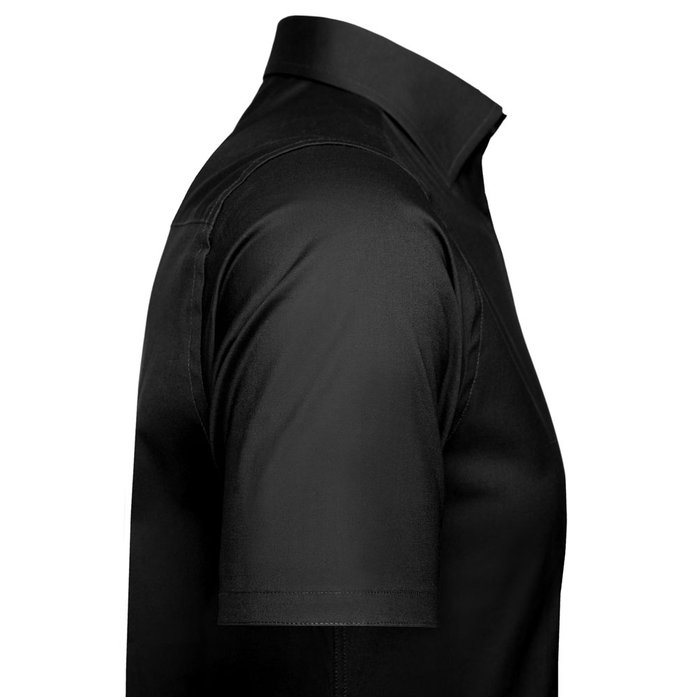 Das Kurzarm-Hemd macht aus optischer Sicht viel her, weil hier großer Wert auf die Details gelegt wurde. Die 7-Knopfleiste überzeugt mit farblich passenden Ton-in-Ton Knöpfen. Ersatzknöpfe gibt es gleich mit dazu. Die rückwärtige Schulterpasse und der abgerundete Saum werden ebenfalls zum Markenzeichen des pflegeleichten Kurzarm-Hemds aus Stretchmaterial (Easy Care). Hohe Ansprüche werden problemlos erfüllt und die Männer überzeugen mit dem Hemd durch ein ansprechendes Erscheinungsbild. Gefertigt aus 97% Baumwolle und 3% Elasthan mit einer Stoffdichte von 140 g/m².