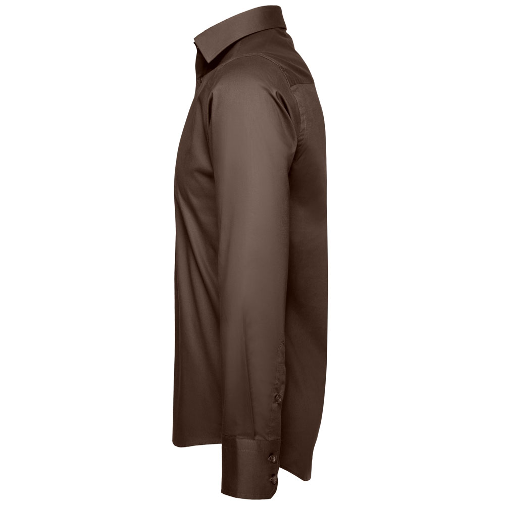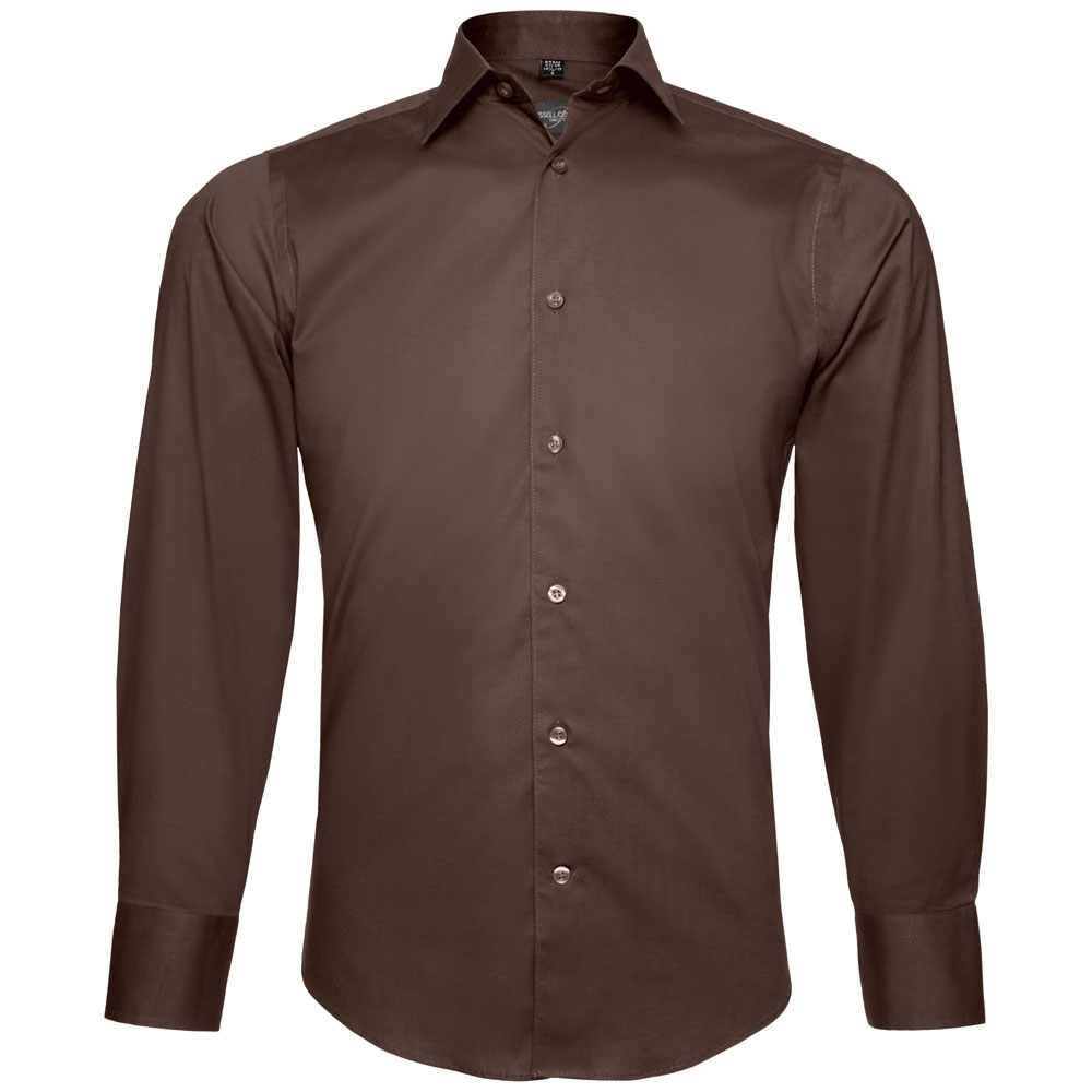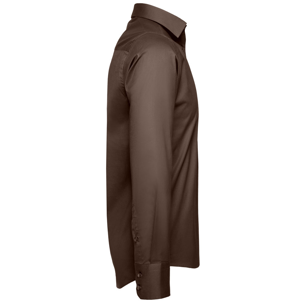 Das pflegeleichte Stretchmaterial (Easy Care) passt sich der Form des männlichen Körpers an. Der abgerundete Saum sorgt für zusätzliche Stabilität. Selbst über eine rückwärtige Schulterpasse verfügt das Modell aus der Russell Collection. Modebewusste Männer dürfen sich freuen: Dieses Langarm-Hemd mit einer Stoffdichte von 140 g/m² ist nicht zu unterschätzen.