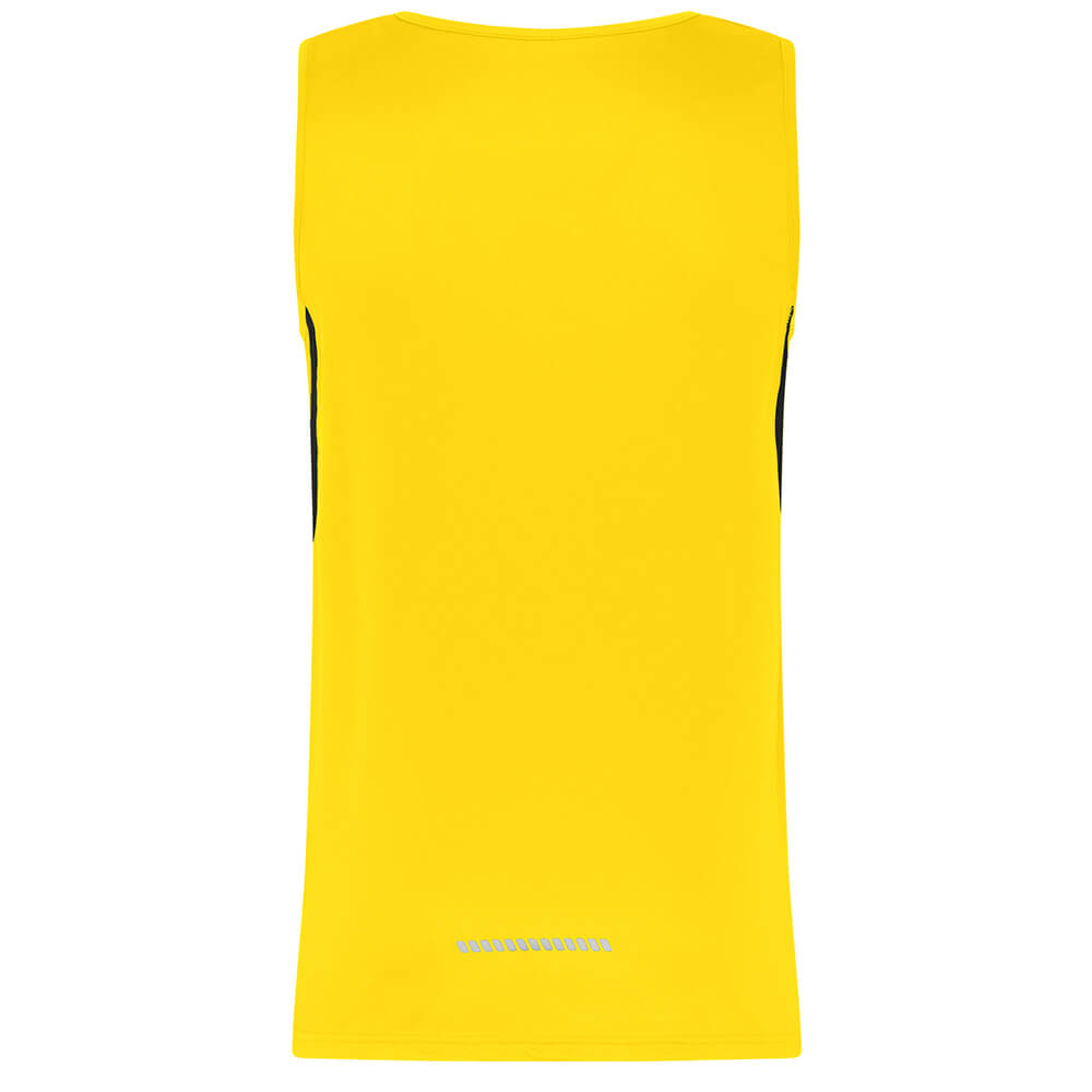 Das leichte Tank Top mit seinen Netzeinsätzen in Kontrastfarbe trocknet ganz schnell ab und ist damit schon nach kurzer Zeit wieder einsatzbereit. Der Rundhalsausschnitt macht den Komfort perfekt und durch den modischen Reflextransfer (ohne Schutzfunktion) und die reflektierenden Paspeln werden die Vorzüge des Tank Tops mit einer Stoffdichte von 140 g/m² komplettiert.
