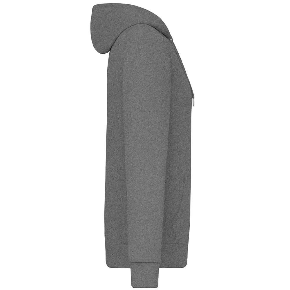 Der Unisex Premium Hoodie King von B&C zeigt sich immer von seiner besten Seite. Das Sweatshirt für Frauen und Männer ist nicht nur in großer Auswahl mit schicken Farben erhältlich, es überzeugt auch durch seinen modernen Style. Die Farben sind übrigens für Frauen und Männer gleich, weshalb auch ein Partnerlook möglich ist. Erzielt wird die Hochwertigkeit durch die Mischung aus 80% einlaufvorbehandelter, ringgesponnener, gekämmter Baumwolle und 20% Polyester (Heather Grey: 75% einlaufvorbehandelte ringgesponnene, gekämmte Baumwolle, 21% Polyester, 4% Viskose; Heather Mid Grey: 60% einlaufvorbehandelte ringgesponnene, gekämmte Baumwolle, 40% Polyester) mit einer Stoffdichte von 280 g/m². Die samtig weiche Oberfläche besteht zu 100% aus Baumwolle und verleiht dem Hoodie sein luxuriöses Erscheinungsbild. Die angeraute Innenseite schafft ein behagliches Gefühl. Für eine optimale Passform ist durch die verarbeiteten Seitennähte ebenfalls gesorgt.