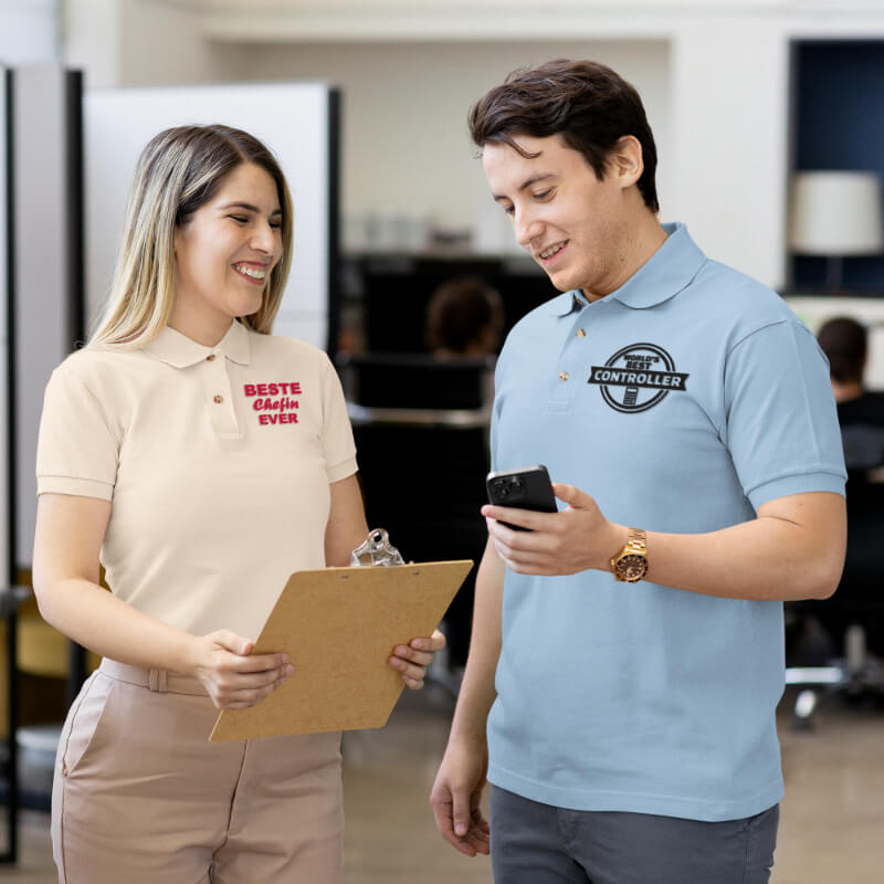 Du willst Deiner Bekleidung Ausdruck verleihen? Dann entscheide Dich für eine persönliche Bedruckung oder Bestickung. Wähle Dir Dein Lieblingsstück aus und bestimme Farbe und Größe.